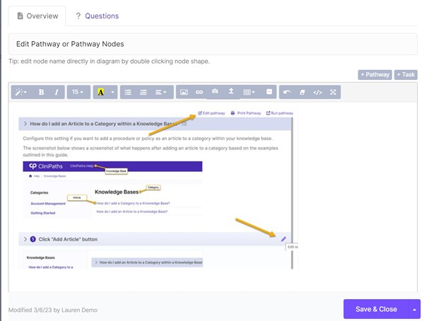 Edit Pathway Node content