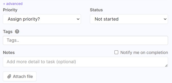 Attach a file, insert notes and receive completion notification.